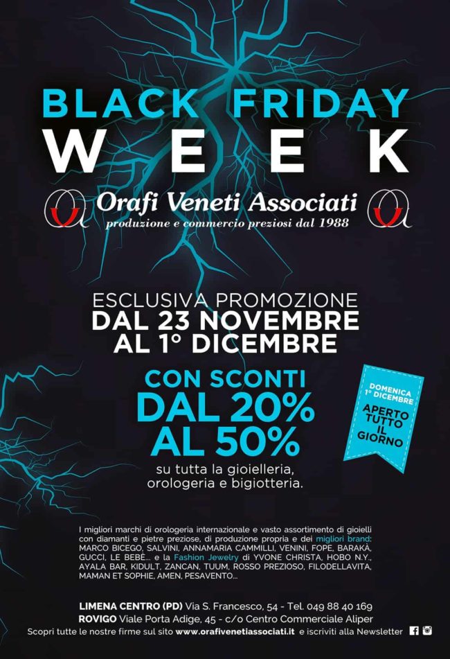 Black week Esclusiva promozione dal 23 novembre al 1° dicembre Sconti dal 20% al 50% su tutta la gioielleria, orologieria e bigiotteria Domenica 1° dicembre saremo aperti tutto il giorno!
