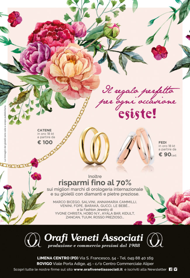 In occasione della primavera vieni a scoprire il regalo perfetto per ogni occasione da Orafi Veneti Associati. Oltre alle promozioni in corso, puoi risparmiare fino al 70% sul migliori marchi di orologeria e su gioielli con diamanti e pietre preziose dei migliori marchi del panorama italiano e internazionale. Il regalo perfetto per ogni occasione esiste!